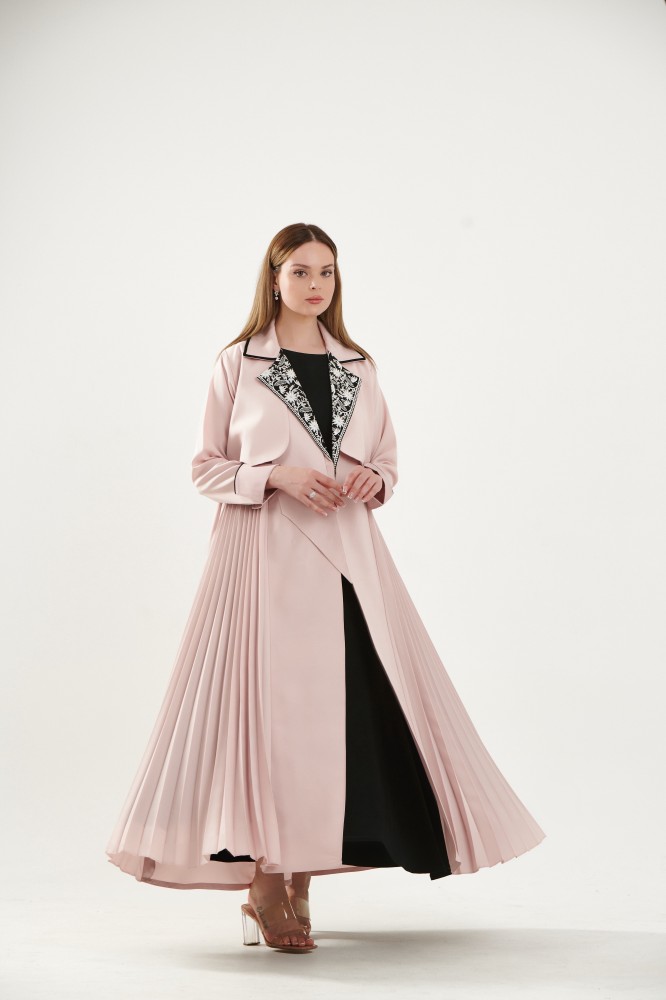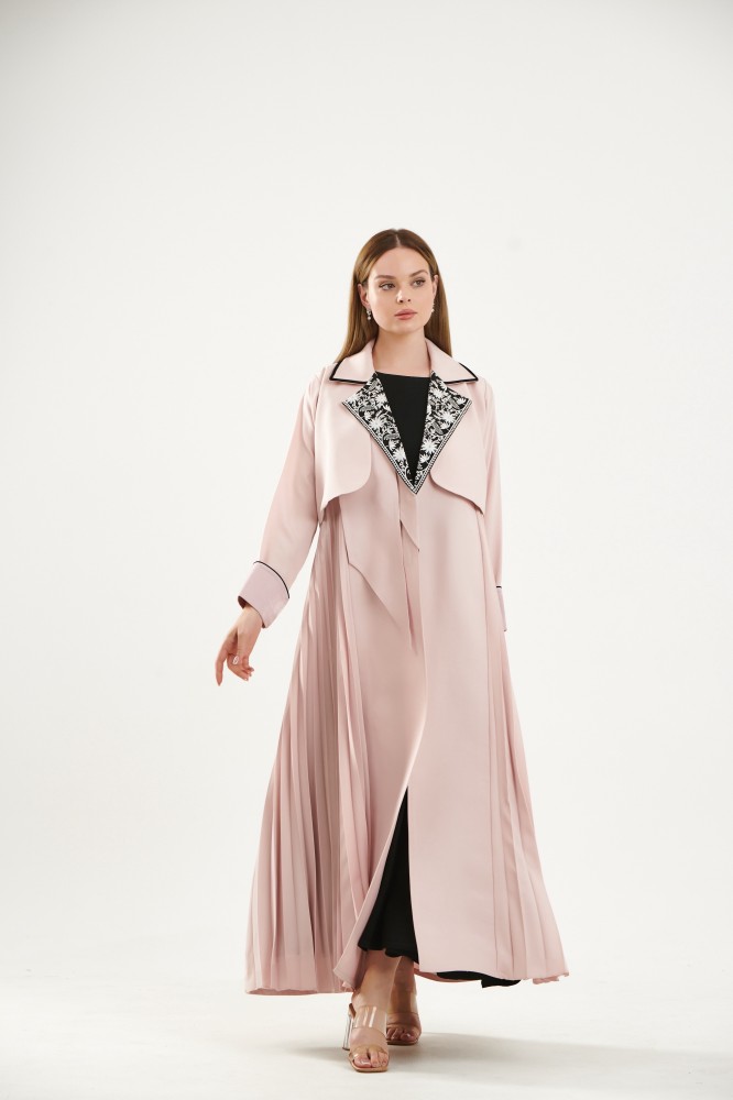 عباية دايموند هي الاختيار الأمثل حيث تعتبر من أفخم في موديلات عبايات تفصيل متجر rueline، تصميمها الأنيق يعكس ذوقك الرفيع ويبرز جمالك الأنثوي، العباية مصنوعة من كريب فرنسي عالي الجودة باللون الوردي الفاتح، وتتميز بياقتها الرائعة المطرزة بالحرير الأبيض النقي بعناية فائقة وشغل يدوي متقن، تضيف لكِ لمسة من الفخامة والجاذبية.